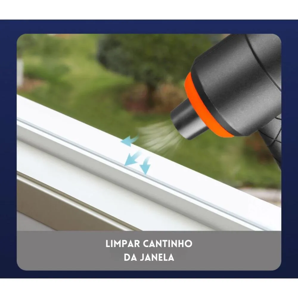 Potente para soprar poeira de superfícies e cantos estreitos.