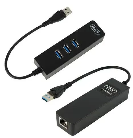 O produto conta com três portas para conexão de periféricos e uma interface dedicada para rede, permitindo a utilização simultânea de acessórios e conexão à rede conforme a compatibilidade do dispositivo principal.