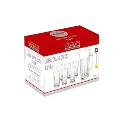 O Conjunto Hauskraft CJPS-075TR reúne uma jarra e seis copos em vidro transparente, oferecendo praticidade e elegância na hora de servir bebidas. A jarra possui capacidade adequada para uso diário ou em encontros com família e convidados, enquanto os copos proporcionam conforto e versatilidade.