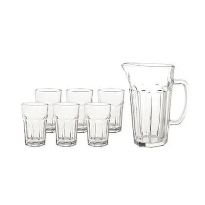 Fabricado em vidro resistente, o conjunto é durável, fácil de limpar e combina com diferentes estilos de decoração e refeições. Perfeito para servir água, sucos, refrigerantes ou outras bebidas frias, oferece funcionalidade com um visual clássico.